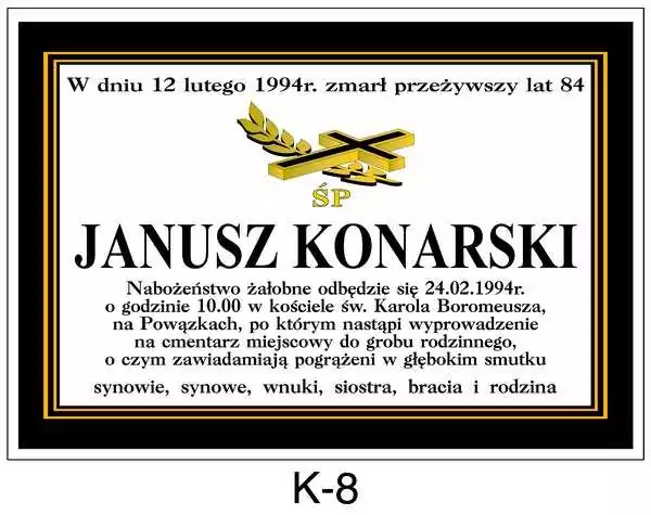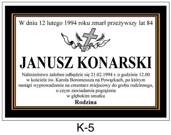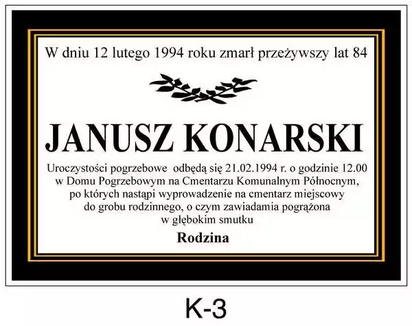 Wychodząc naprzeciw Państwa oczekiwaniom oferujemy szeroki wybór klepsydr w Warszawie. Klepsydra to informacja o śmierci i pogrzebie w formie papierowej. Na klepsydrze widnieją te same informację co w nekrologu czyli imię i nazwisko, miejsce, data i godzina pochówku. Treść każdej klepsydry można dowolnie modyfikować.